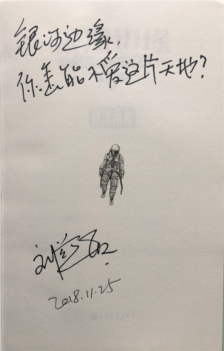 ▲《三体》作者刘慈欣为“银河边缘”系列题字