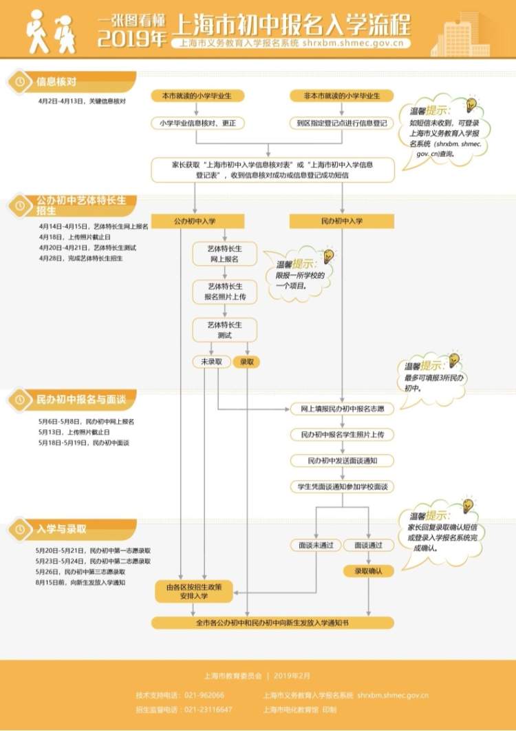 3月中旬,各区将公布公办小学招生划片范围、公办初中入学方式、体育艺术特长生招生计划等具体信息,相关公办小学也将公布包括入学排序细则在内的招生入学通告(方案)。本市将继续做好本市户籍“人户分离”适龄儿童居住地登记入学工作,3月15日前,各区公布本市户籍“人户分离”适龄儿童入学实施细则。