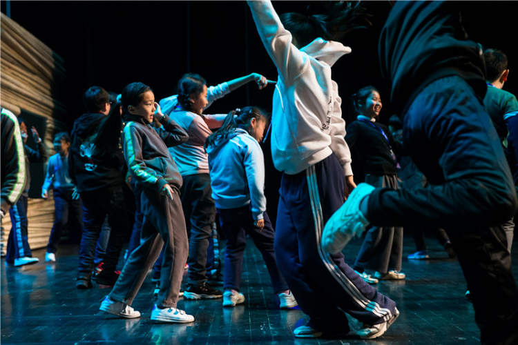 不同的是,前面三轮演出都在中剧场,每轮小演员都是20人左右。此次为了适应文化广场的大舞台,剧组不仅重新制作了舞美道具,更索性将同时出现在舞台上的小演员人数增加到了41人。