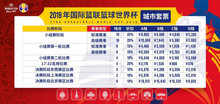 本届赛事的球票分球队套票、城市套票、单日通票和单场比赛门票4种票品形式,涉及100多种的票品组合,是由官方票务大麦网基于2019年国际篮联篮球世界杯的赛制定制而成。