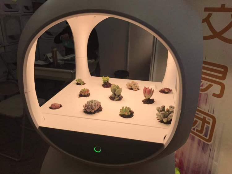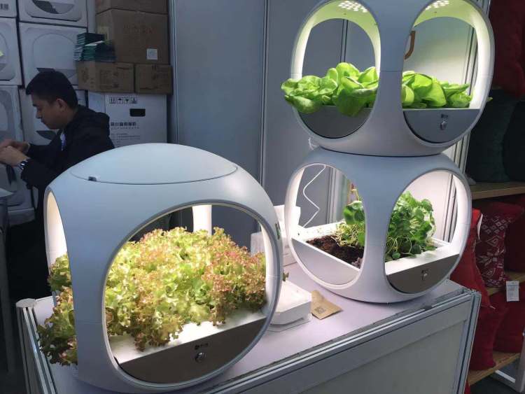 据现场工作人员介绍,这款“菜小盒”智能种植机可以让大家在家里就种出无公害蔬菜——大家脑补一下,客厅里种上菜,摘下来直接送进厨房、摆上餐桌,无农药残留,也无重金属、亚硝酸盐,新鲜得不得了,好像有点优秀呢!