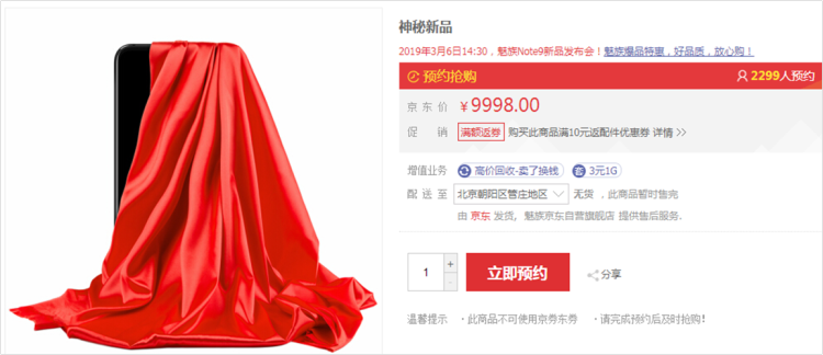 据悉,魅族Note 9新品发布会将于3月6日召开,届时将开放抢购。目前魅族天猫旗舰店、魅族京东旗舰店均可预订魅族Note 9。