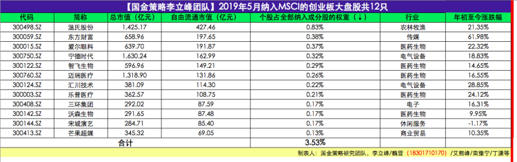 根据安排,本次纳入完成后,MSCI明晟新兴市场指数(MSCI Emerging Markets Index)将包含A股的253只大型股和168只中型股。目前纳入该指数的A股大盘股共236只,在包括创业板大盘股以及169只中盘股加入后,11月超过400只A股将被纳入。届时,MSCI新兴市场指数的预计成分股中将有27只创业板股票,包括12只创业板大盘股和15只创业板中盘股。