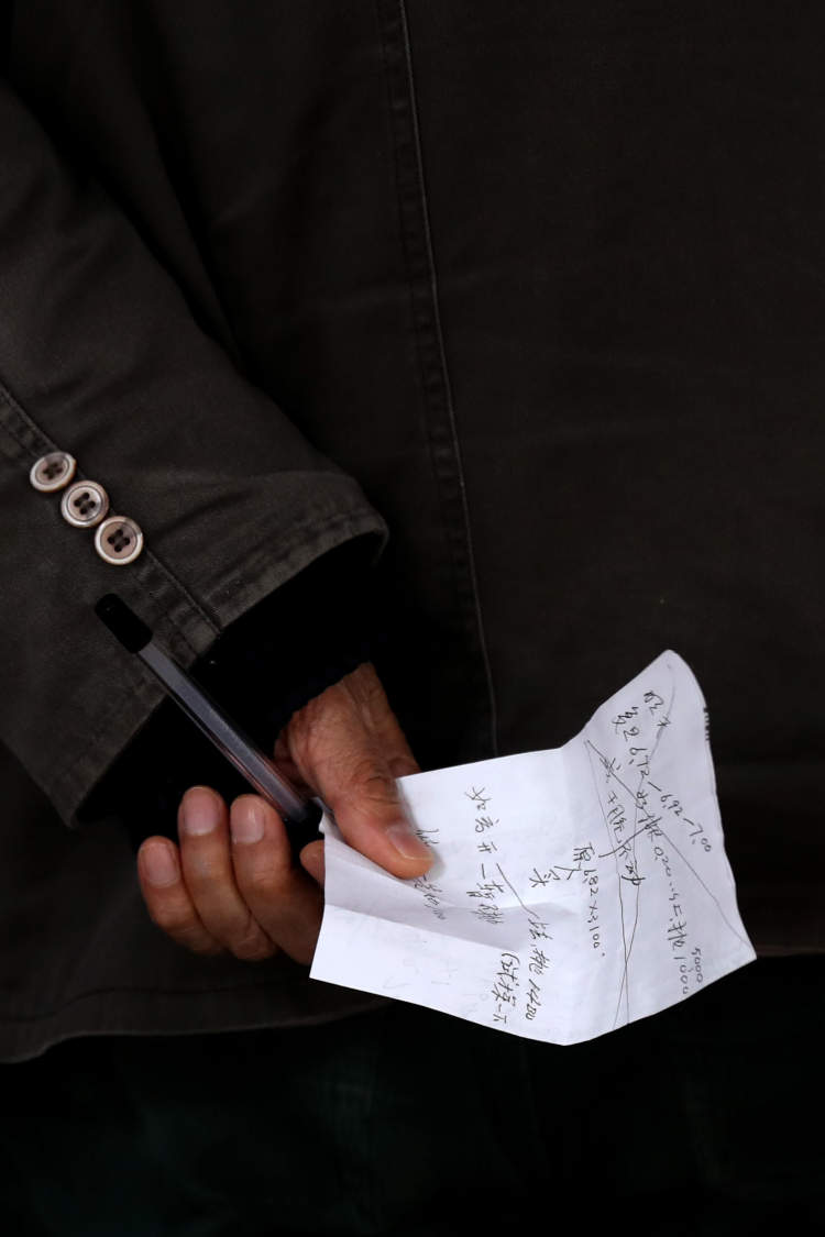 大爷在这张小纸片上算又算,买进卖出全靠它。
