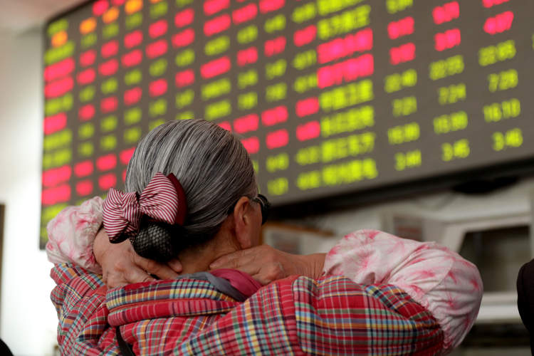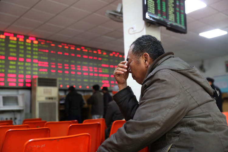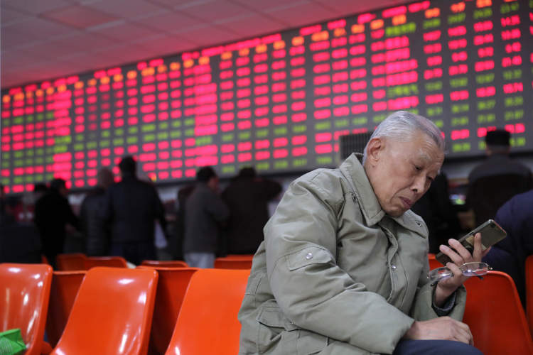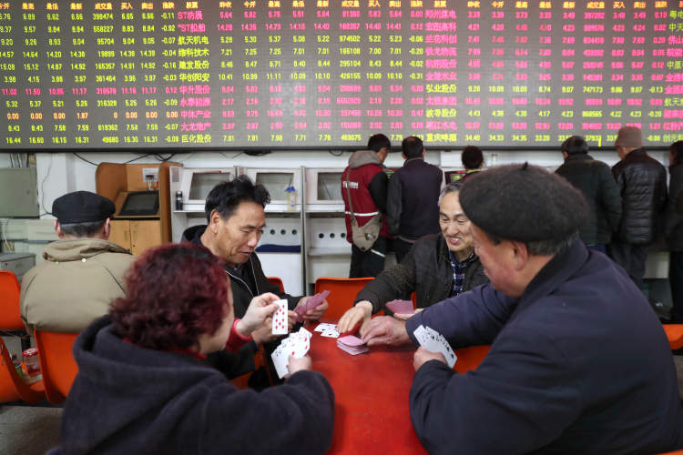 股市收盘后,几位股民坐在一起轻松地打起了牌。