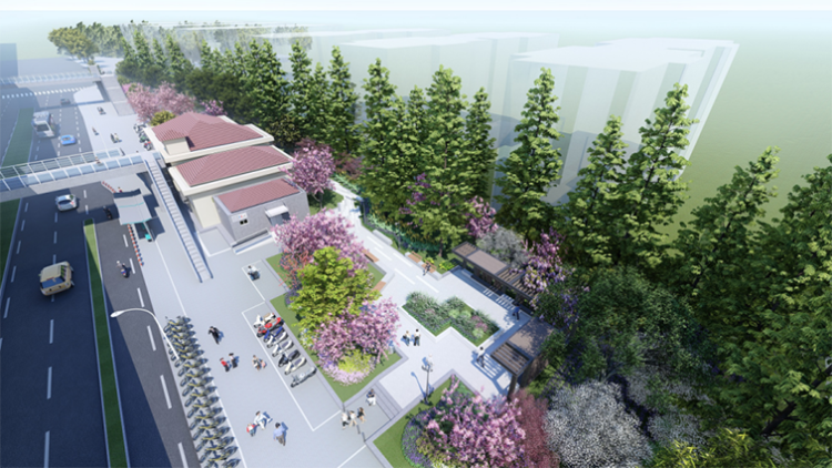 对于周到君来说,每天上班的必经之地——彭浦新村地铁站两侧绿地,并不是一片入眼的风景。因为绿地沿共和新路沿线非机动车场地较多,有地铁扶梯出入口4个,绿地南入口早高峰人流集中,下沉广场台阶多,对行人通行有一定影响,北入口人流较小,地砖铺装破碎缺少吸引力。
