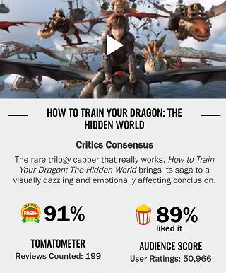 《驯龙高手3》早于国内一周在北美上映后,口碑票房双丰收。凭借5800万美元的首周末票房刷新三部曲新高,同时创下2019年北美最佳开画成绩,自上映以来,一直力压《阿丽塔》。