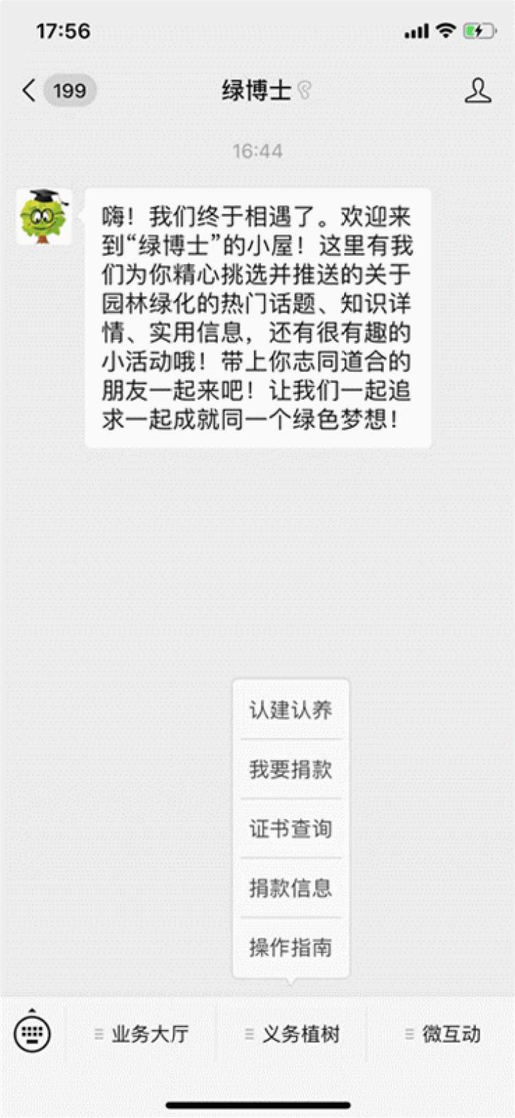 根据提示,小哥先关注了“绿博士”微信公众号,点击最下方“义务植树”,然后点击“认建认养”,来到“绿化认建认养”界面。接着选择自己想要认养树木的具体地区,留下自己的姓名和手机号之后,再点击“意愿提交”即可。