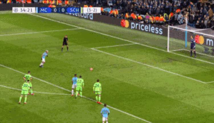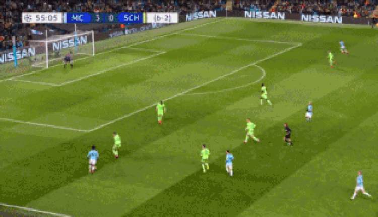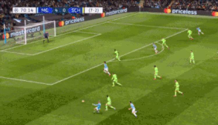 第71分钟,津琴科直传,萨内左路插上倒三角回传,贝尔纳多·席尔瓦跟进顺势扫射破网,曼城5:0沙尔克。