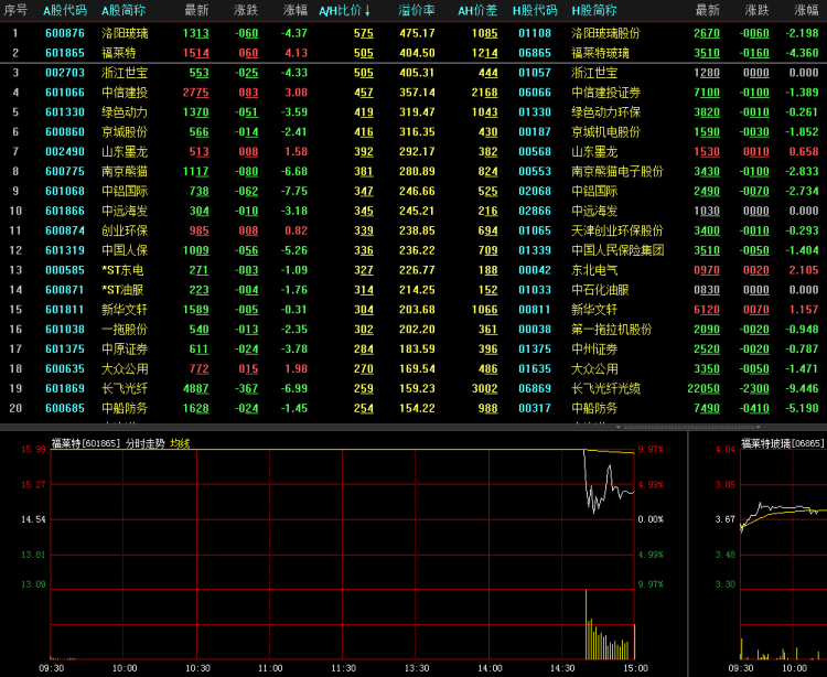 福莱特是全球第二大光伏玻璃生产商,今年2月15日A股上市后连续收出18个涨停板,成为2019年新股“涨停王”。作为国内光伏玻璃制造行业的龙头企业,福莱特成为今年涨停王还因为发行价低,13日其换手率近50%。当天其A股收盘价是H股的5倍,在所有A+H股中和浙江世宝并列第二高。