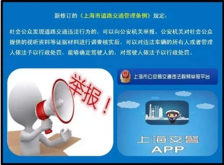 上海交警部门表示,市民如发现道路交通违法行为,可向公安机关举报。举报途径如下: