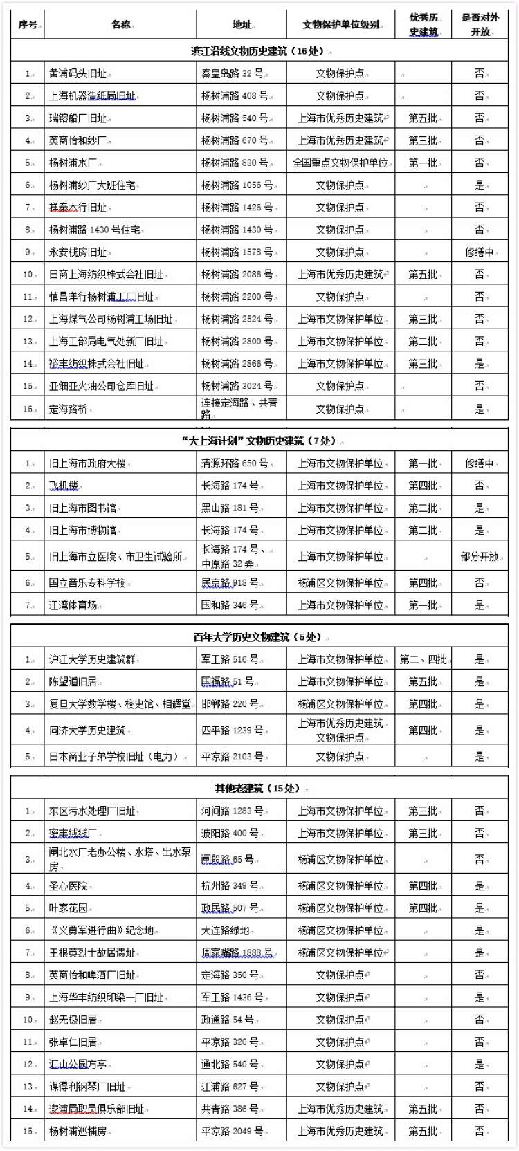 (本名单由杨浦区文化和旅游局提供)