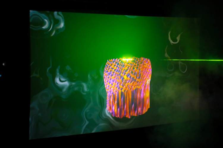 系统通过机器学习分析各种实时数据,如声音数据、环境数据和网络数据,形成实时生成图像。之后,这些图像会与现场的音乐联动,形成音画联觉的美妙体验。