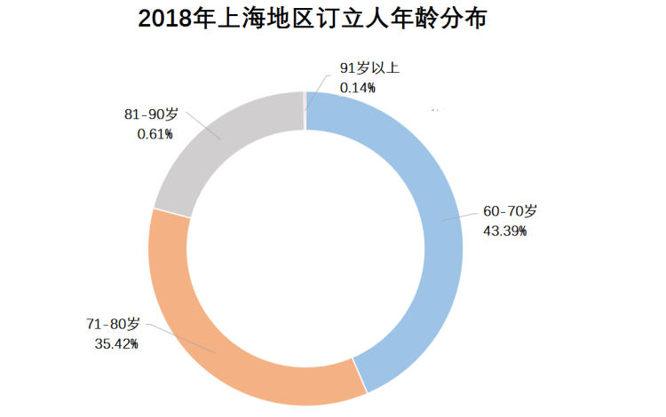 2018年,在上海分库订立遗嘱的老人当中,60-70岁的占据43.39%,比重最大。