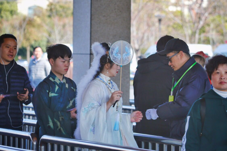 而轨道交通7号线顾村公园站也根据客流变化进行了调整,例如下午进园、出园游客叠加时,便采取了限流疏导措施,3号口只出不进,5号口只进不出,同时原有闸机仅供手机扫码进展,持单程票和交通卡的游客可通过另开的临时通道,在人工手持机器上刷卡进站。