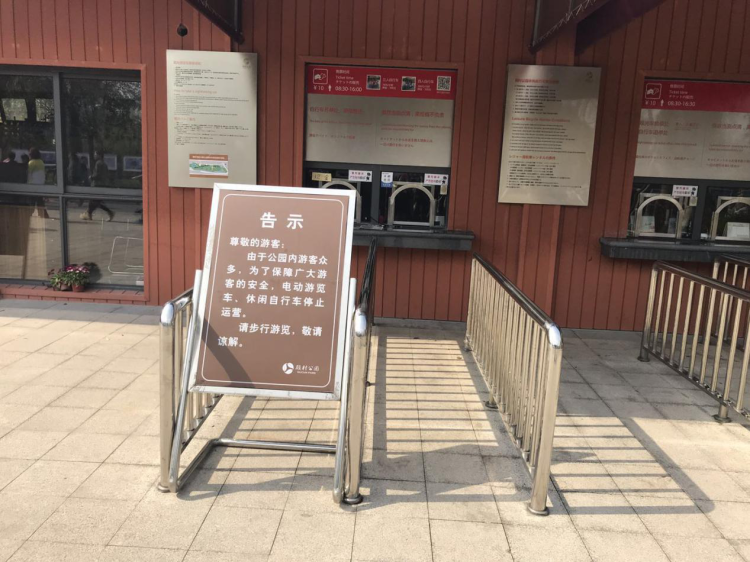 由于客流量大,公园内的电动游览车、休闲自行车也都停止了运营。