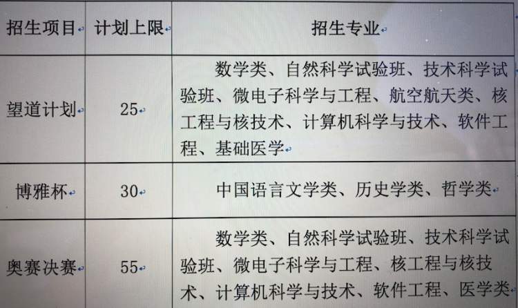 (1)高中阶段获得数学、物理或化学奥林匹克竞赛全国联赛省级赛区一等奖或以上奖项,可根据获奖学科选报数学类、自然科学试验班、技术科学试验班、微电子科学与工程、航空航天类、核工程与核技术或基础医学等专业(类);