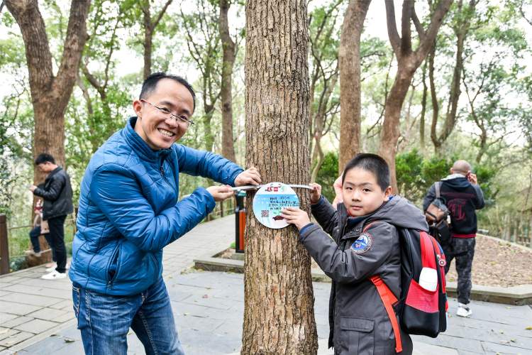 活动现场,参与的家庭在领取了认养牌以及周到精心准备的礼品之后,可以带着孩子在佘山森林公园的指定树木上悬挂认养牌。小朋友踮起脚尖,认真地把认养牌挂上大树,孩子们一定会像佘山的参天大树一样,茁壮成长。