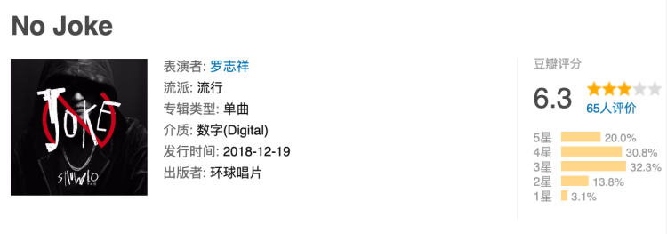 新专辑首支单曲《NO JOKE》于去年推出,豆瓣评分6.3。
