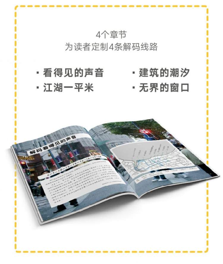 在《外滩解码》一书中,他们精心设计了4组密码。细小到街道上的声音、看得见风景的窗口、平常人的生活状态,宏大到成片的建筑物、纵横交错的人物关系网,无论跟随哪一组密码,都将带来解锁观察外滩的新角度。