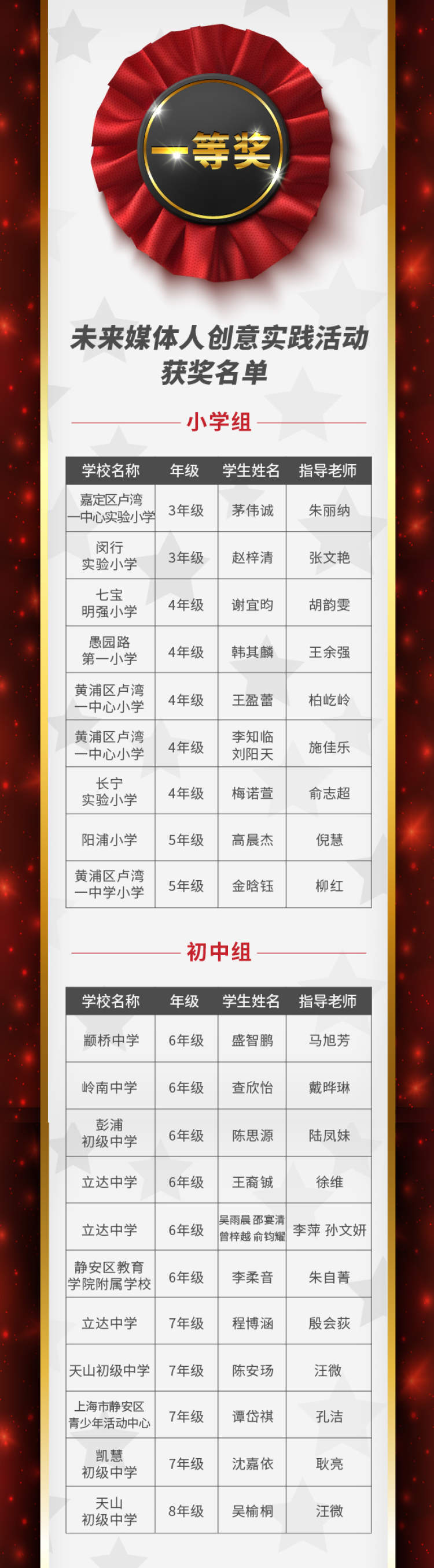以下是本次决赛获奖全名单!有你熟悉的同学和老师吗?