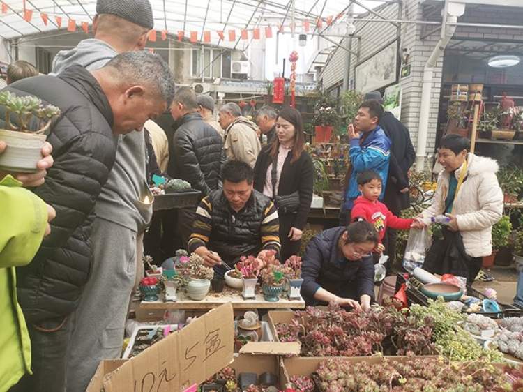 很多商户把自家货摆在店外卖,插写有折后价的牌子,供顾客挑选。盆栽区顾客爆满,围着盆栽的顾客把走道都挤没了。多肉价格也都不贵,相对正常市场价便宜不少,差不多等于某宝价。普遍在10元3盆,10元5盆的样子,品种很多!