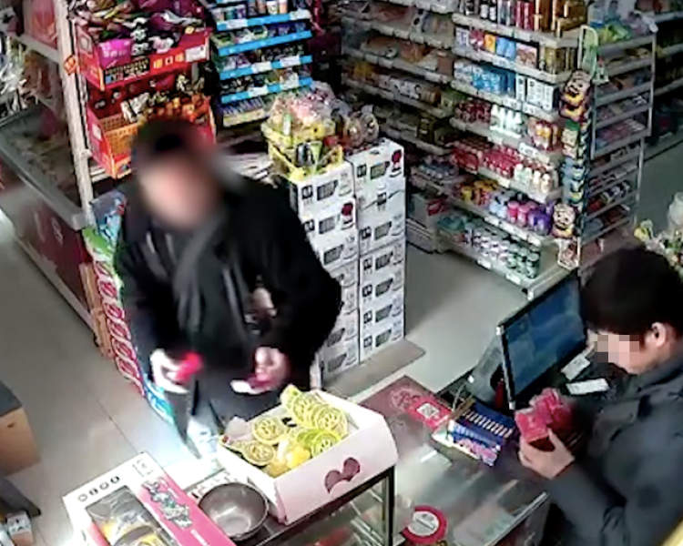 3月11日,李谦穿着黑色夹克斜挎一个黑包走进海波路一家杂货铺。他右手伸进外套左侧的内袋,拿出一沓人民币,说:“软中华多少钱?”