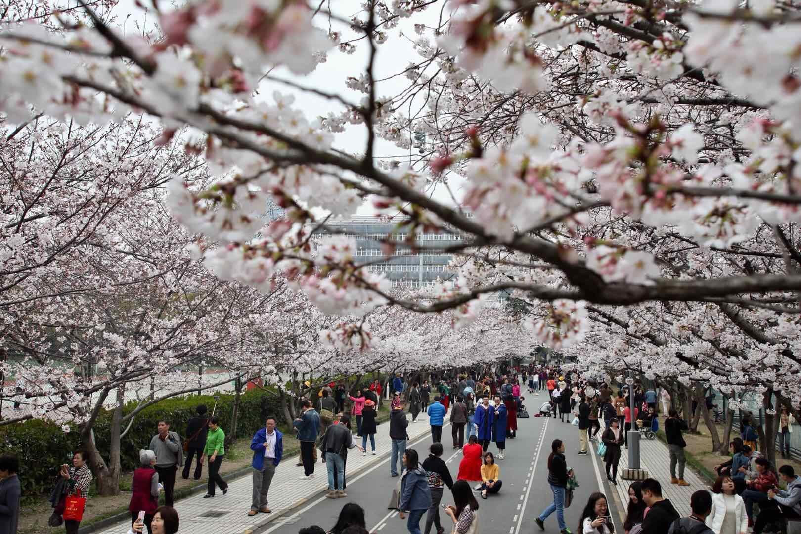 伴随着气温上升,同济的樱花越开越美,也引来了众多市民前去观赏,今天的同济樱花大道,人流明显比昨天多了不少,同济大学校方今天也发布了学校关于加强樱花观赏期间校园安全管理的通知。
