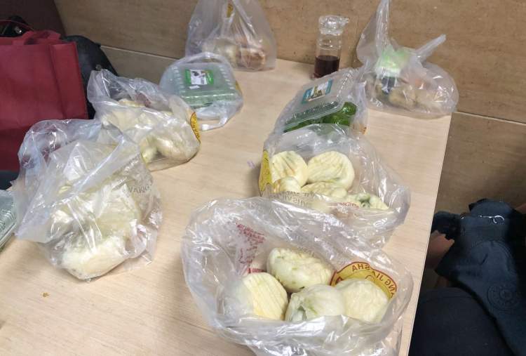买完这两样,有经验的顾客还会找个地方坐下,把刚买好的热乎乎的包子、青团打开包装,摊开来透透气。“这样就没有水汽了,拿到家不会变形。”一位阿姨告诉周到君这其中的讲究。