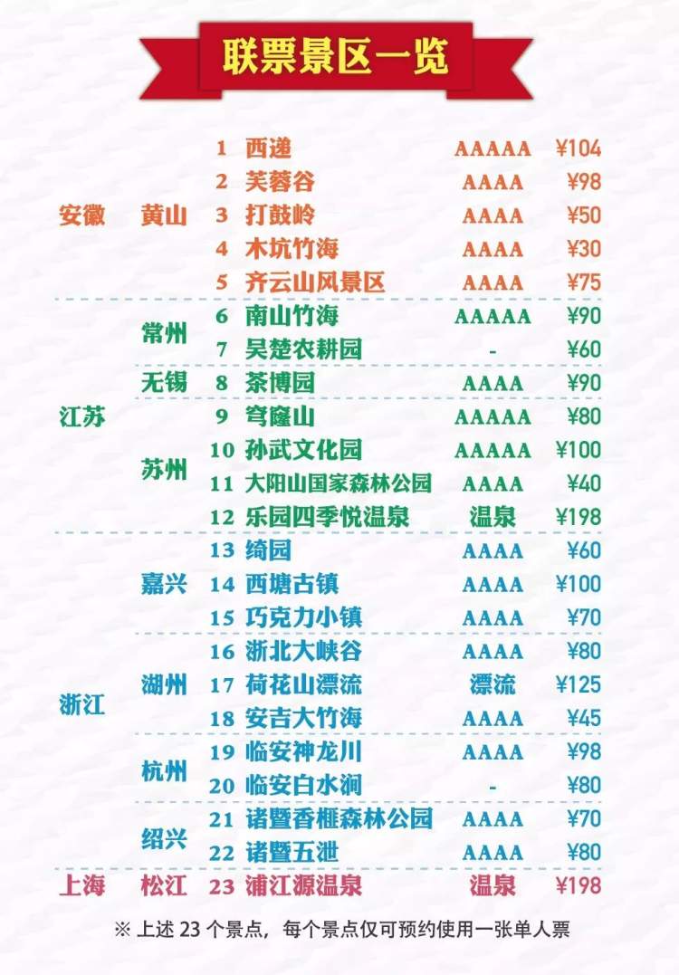范围:长三角30多家4A和5A景区