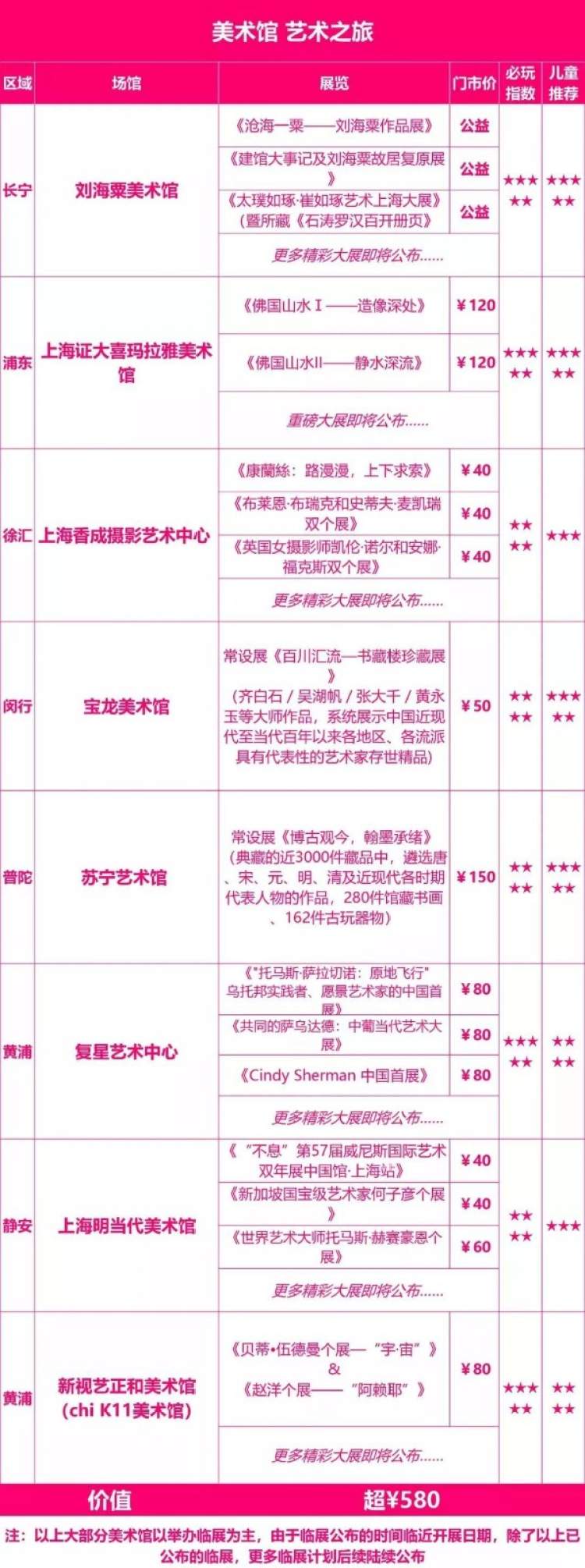 价格很划算,只要在喜马拉雅美术馆、复星艺术中心、苏宁艺术馆中挑两个去,马上就能值回票价!更不用说还有这么多展馆可以一个一个看过来↓