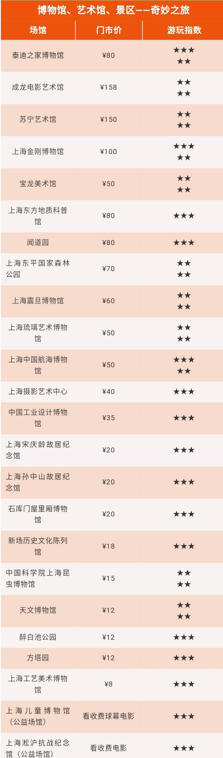 范围:上海地区20多家博物馆