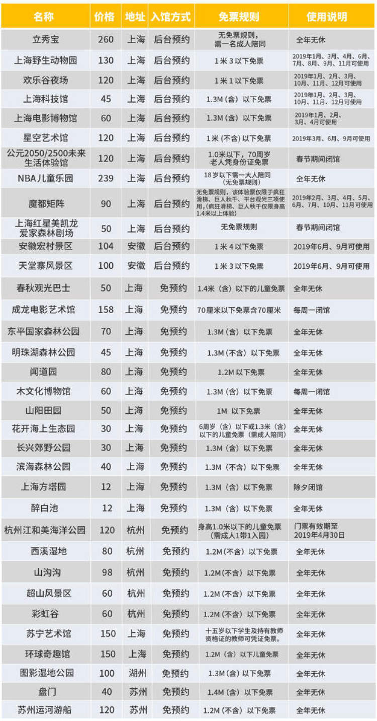 最后说一句题外话,如果你家孩子还小,那么上海特定景点的年票也是不错的选择。欢乐谷、环球金融中心去2次就能基本赚回票价,上海野生动物园、上海海洋水族馆、上海长风海洋世界、上海海湾国家森林公园、东平国家森林公园去3次也不亏了。