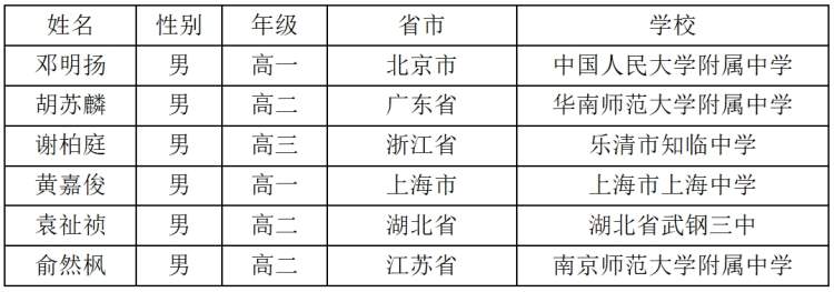 其中,高三1名,高二3名,高一2名。在入围的高一生中,来自上海中学的黄嘉俊是本次上海入选的唯一一名选手。