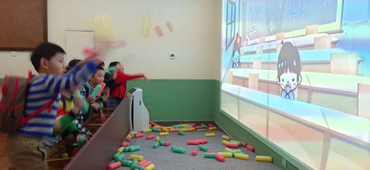 一间间教室里,孩子们玩着各种有趣的游戏。