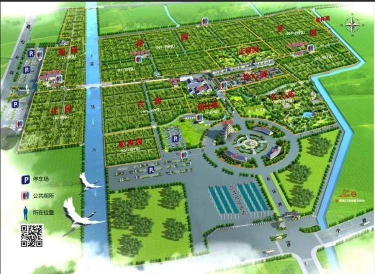 祭扫车辆从沪宜/翔乐路口进,沿翔乐路至墓园1号、2号停车场停放,出墓园停车场车辆沿翔乐路至惠平路口出。