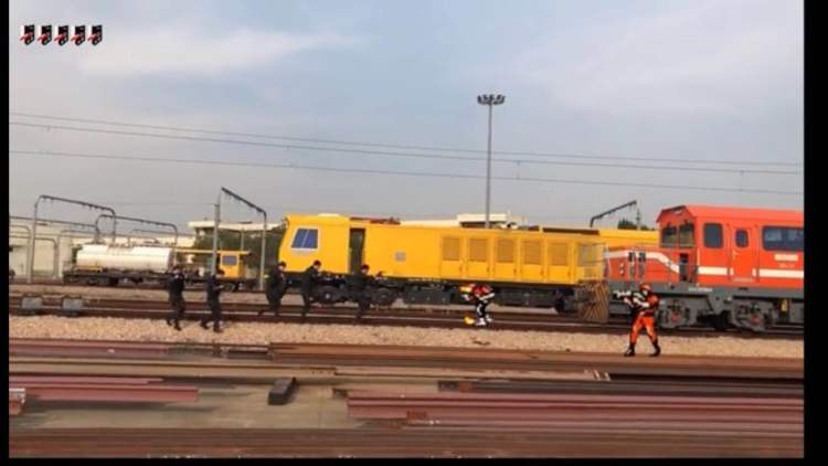 为了贴合工作环境,拍摄团队在上海轨道交通基地的铁轨和地铁车库就地取景,把平时训练的战术训练融入视频创意中。