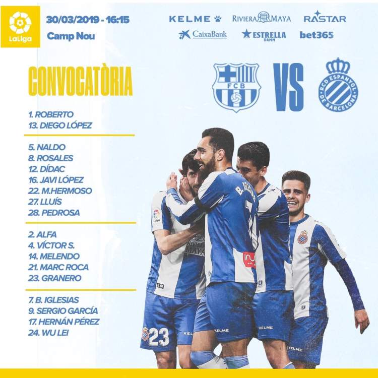 北京时间今天凌晨,出战今晚西甲加泰罗尼亚德比的两支球队西班牙人和巴塞罗那都公布了自己的大名单。