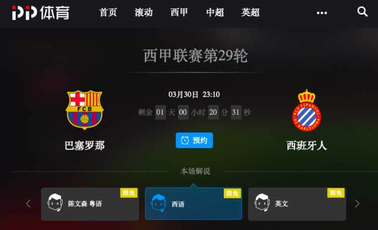 PPTV本场比赛一共将提供6路解说信号,球迷可以根据自己的喜好来选择解说嘉宾。比如,你要是想体验原汁原味的西甲,还可以选择PPTV的西班牙语解说。