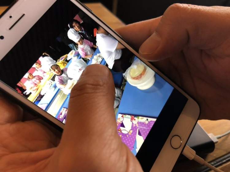 ■家长镜头下,孩子们边做蛋糕,边吃果酱。