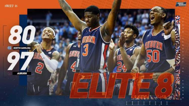 最终,奥本大学全场轰进17记三分,以97-80击败北卡大学挺进精英八强,创造了一个冷门!