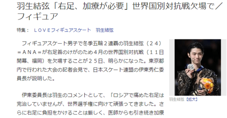 不过,靠着吃止疼药硬挺终究不是一个正确的决定。羽生在上周通过冰协发表声明称自己将放弃世团赛,好好养伤。