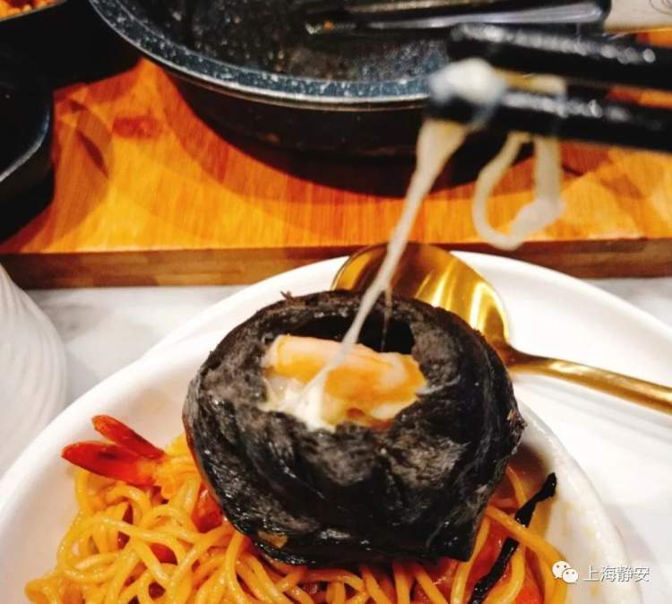 大虾芝士生煎是招牌,面皮是用墨鱼汁做的,里面包裹着弄弄的芝士和大虾,咬一口生煎竟然能拉丝,超洋气的!