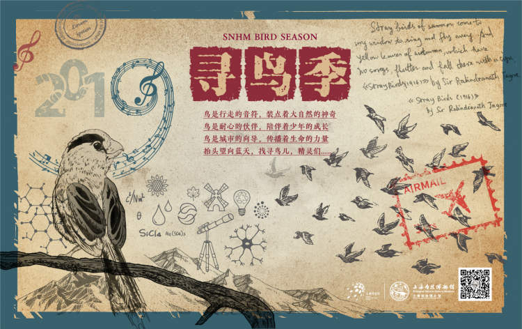 寻鸟季是2019年上海自然博物馆推出的重要品牌活动,从3月30日持续至6月30日,期间将推出一系列以鸟类为主题的丰富活动,邀请观众参加这场春天里的嘉年华。