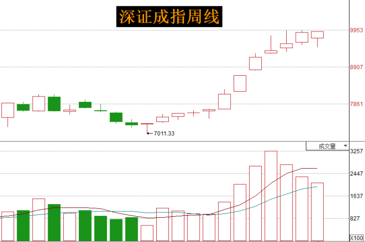 上面4个分类指数中,只有深证成指周线是逆天12连阳!