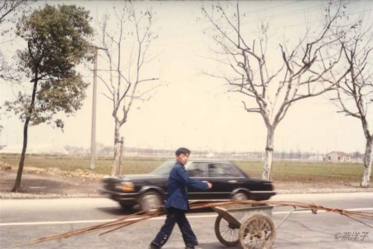 ■80年代中期的虹桥路有大片农田,不过路人身后一辆日本皇冠车驶过,让洋子感到很亲切。
