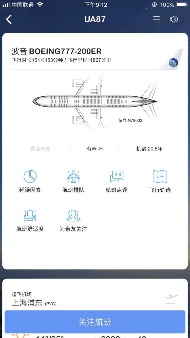 晨报周到记者查询飞常准获悉,该航班今天下午15:57分由浦东机场起飞,18:12分返回浦东机场。该航班由波音777-200ER执飞,注册号为N78003,机龄20.5年。