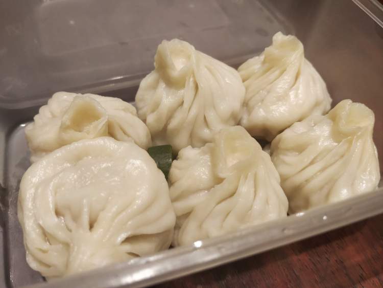 上桌之后,只见 6 只白净的小笼整齐地排在盒子里。小心翼翼地夹起来一只,轻轻地咬掉一角,只见肉馅与鲜肉小笼肖似,回味则有鱼的味道。汁水是满溢的,味道是淡泊的,像是味精还未曾提炼成味精的时候。最好的一点是完全不腻,一口气吃掉六个,蘸醋吃更是中和。
