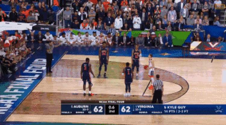 凭借着凯尔·盖伊的罚球绝杀,弗吉尼亚大学在最后17秒落后4分的情况下上演逆转好戏,以63-62险胜奥本大学,队史首次晋级疯狂三月锦标赛决赛。
