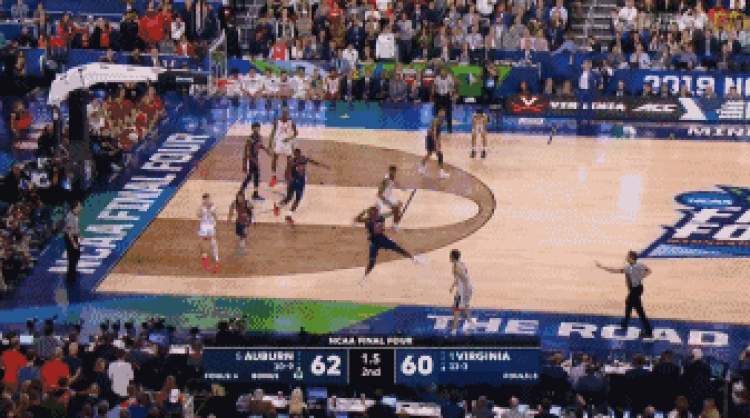 弗吉尼亚大学一度领先到了10分,但在领先到10分之后,奥本大学的布朗突然爆发,率队打出进攻高潮,在比赛还剩17秒时奥本大学取得4分领先优势。